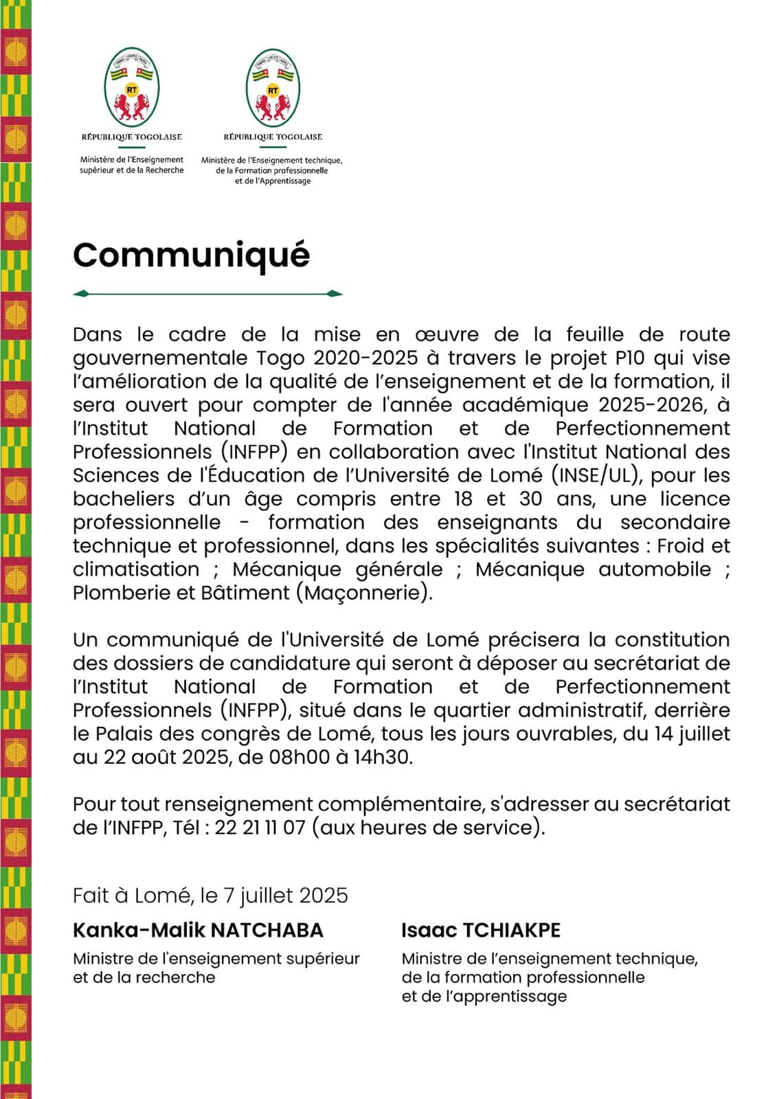 Read MoreINFPP : LA LICENCE PROFESSIONNELLE D’ENSEIGNEMENT DU SECONDAIRE TECHNIQUE ET PROFESSIONNEL S’INSTALLE PROGRESSIVEMENT Le 27 Octobre 2025 reste une date...